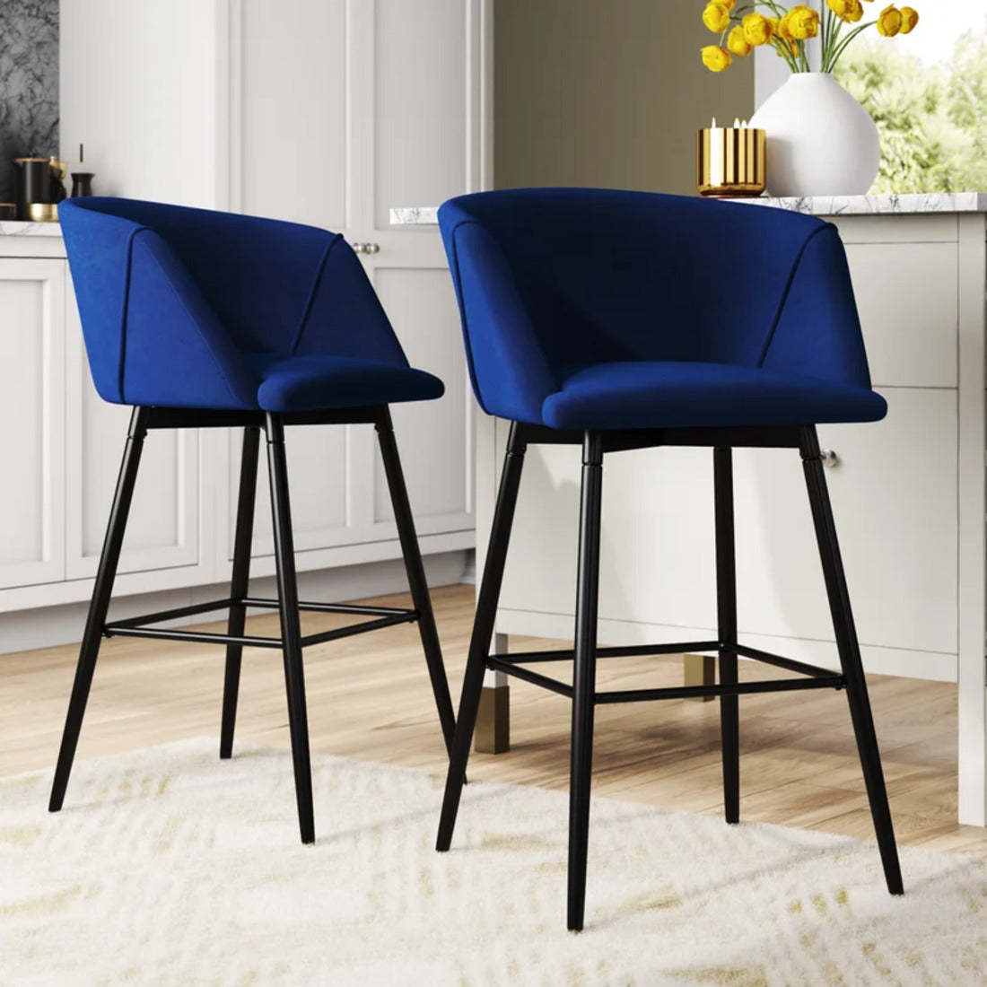 Luxurious Comfy Blue Velvet Counter Bar Chair / Long Chair