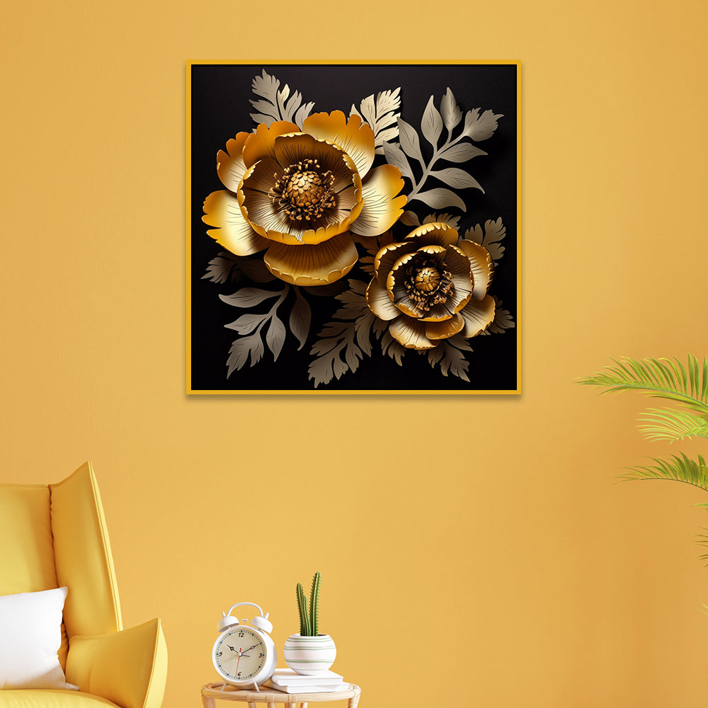 Luxury Golden 3D Metallic Flower Design Canvas Wall Painting