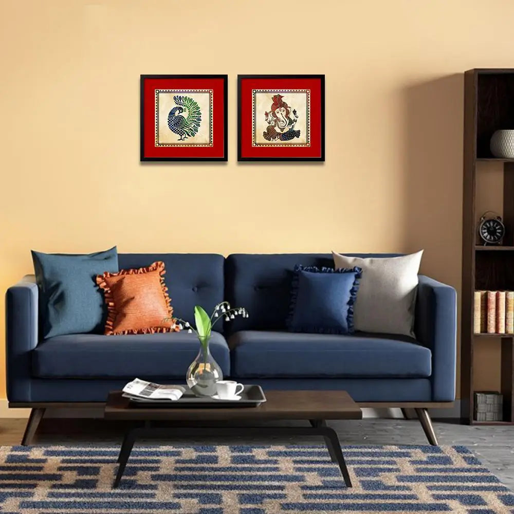 Madhubani Spritual Art Collage Picture Wall Frame Set of 2