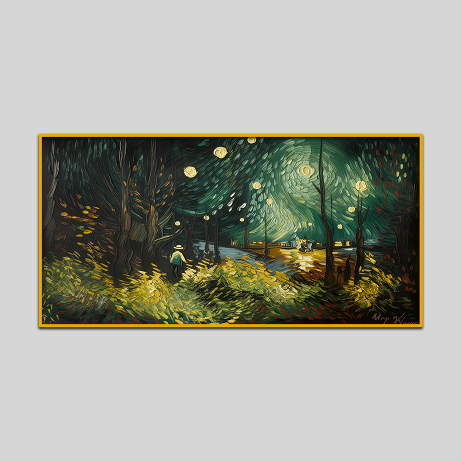 Man Walking Forest with Moon Background Canvas Wall Paintings