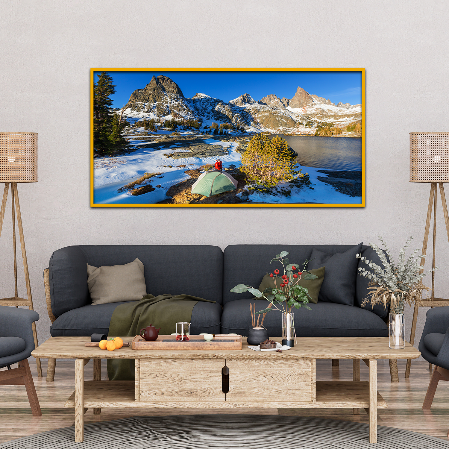 Man With Hiking Equipment Walking Sierra Nevada Mountains Canvas Wall Paintings