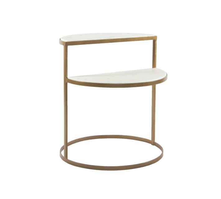 Airy and chic, the Marla Marble End Table pairs polished white marble with a wrought-iron demilune frame. The streamlined design makes it a versatile piece that’s ideal in smaller spaces, whether in a sitting area or next to a bed.