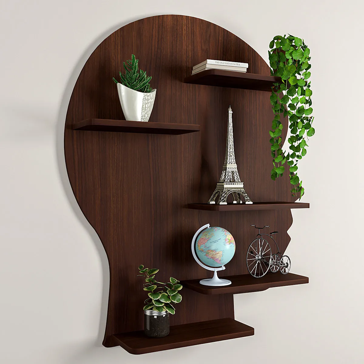 Man Backlit Wood Wall Shelf / Book Shelf, Walnut Finish