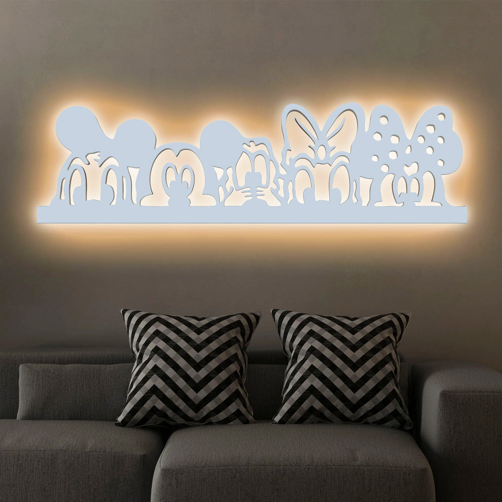 Mickey Mouse And Friends Backlit Wooden Wall Decor with LED Night Light Walnut Finish