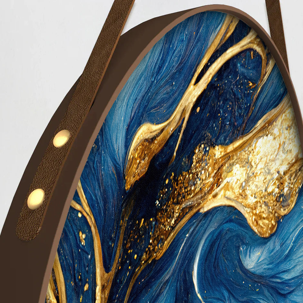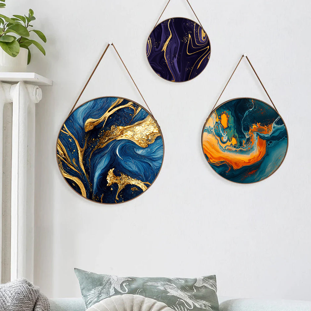 Minimalist Blue & Gold Round Framed Canvas Wall Paintings - Set of 3