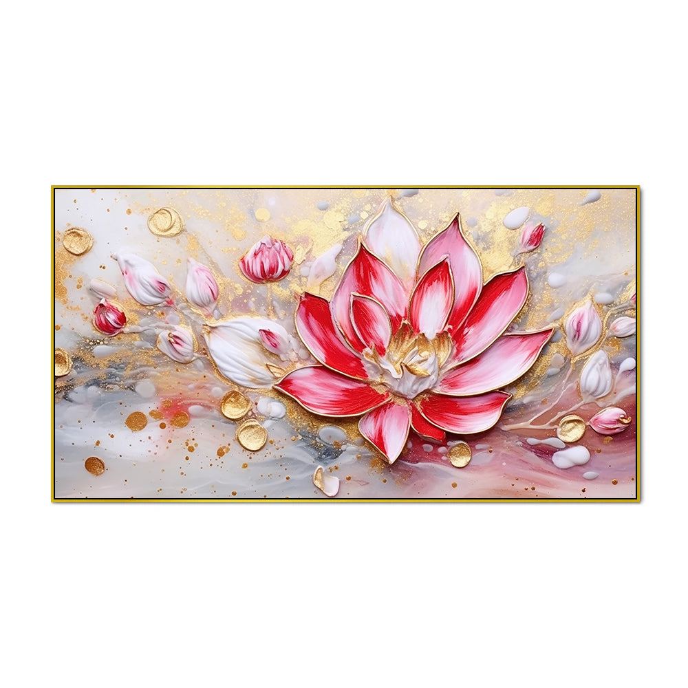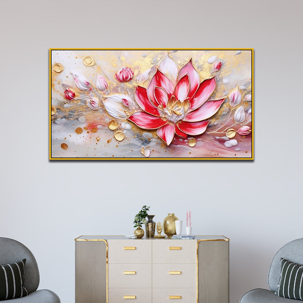Modern 3d Abstract Elegant Golden & Pink Flower Printed Canvas Wall Painting