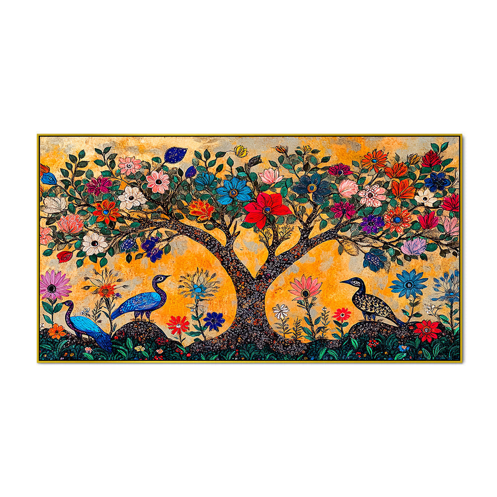 Modern Art Madhubani Big Painting with Floating Framed