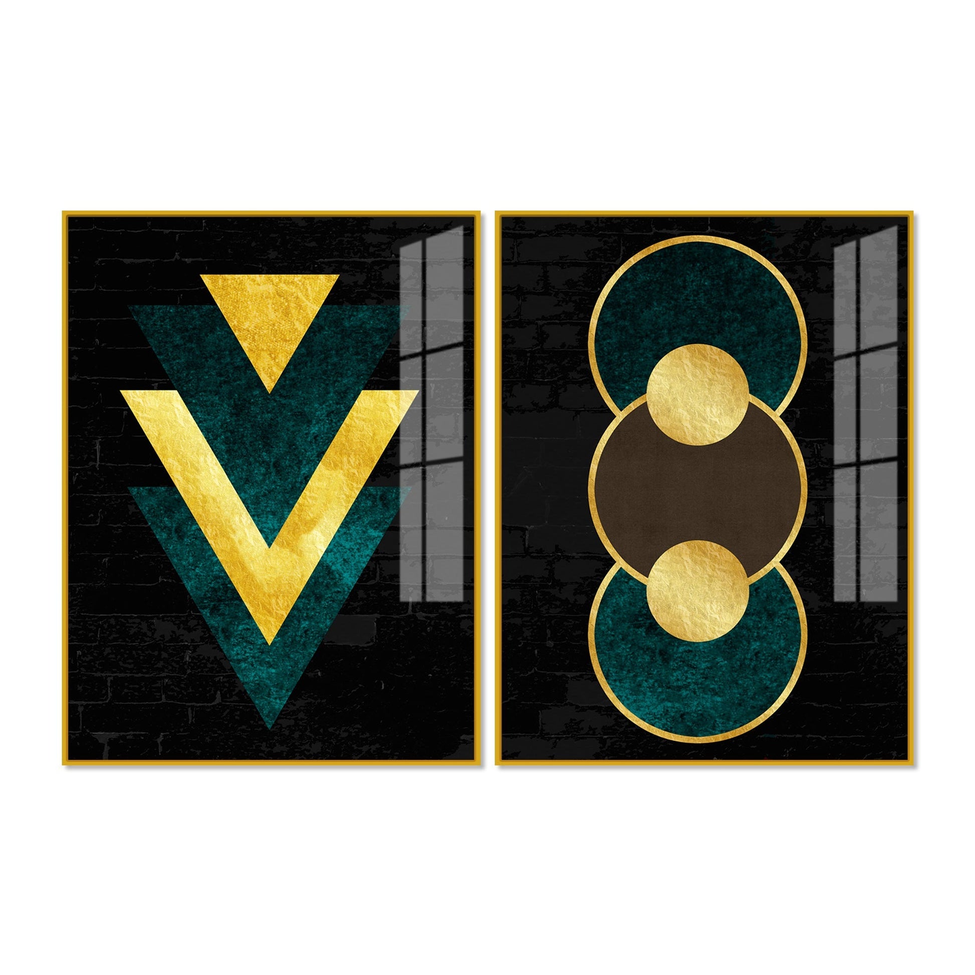 Modern Artistic Geometric Shapes Acrylic Floating Wall Painting Set of 2