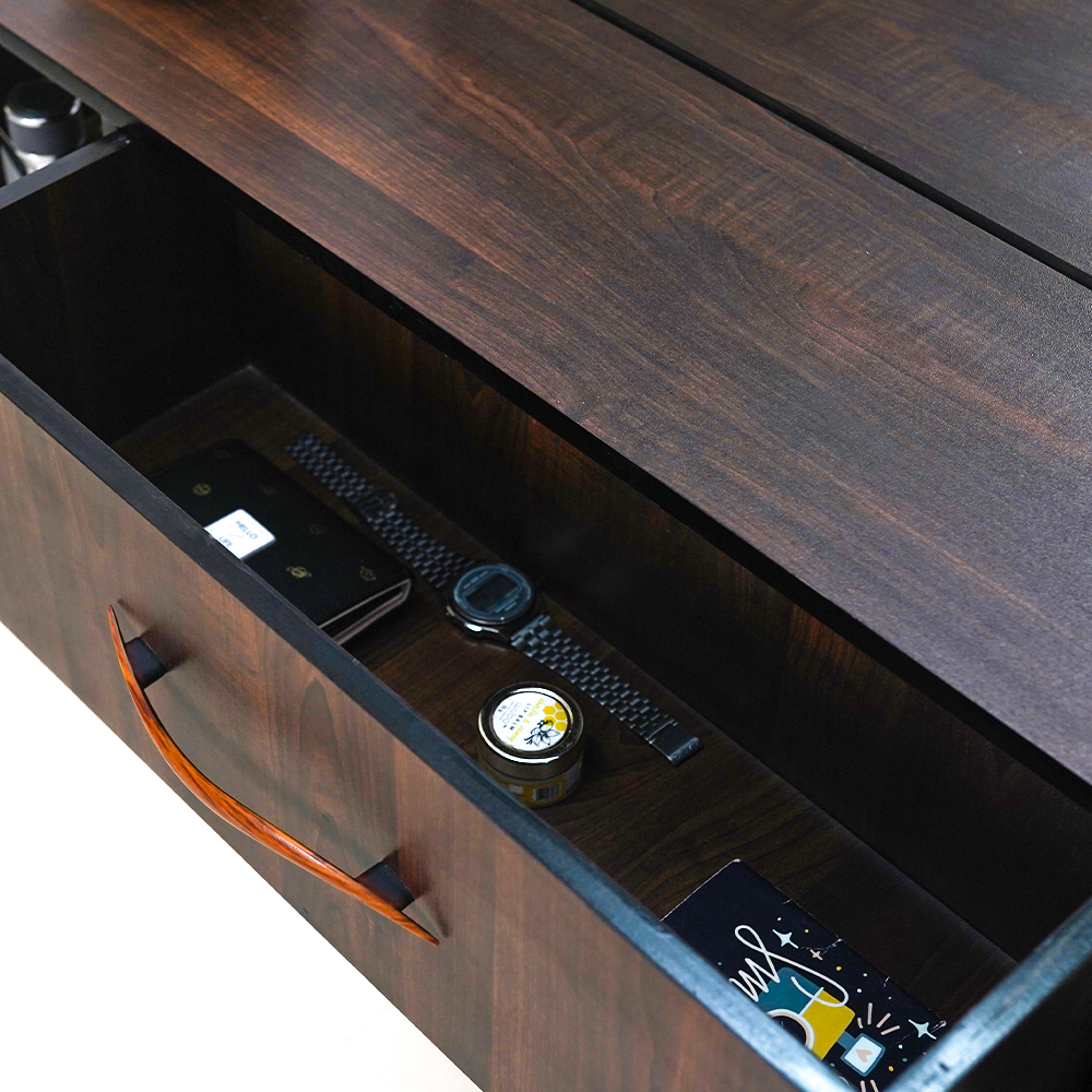 About the Product: Uncompromising in style, aesthetic and quality, this classic dressing mirror will make a classy and stunning component in any contemporary living space. The genuine magnificence of this mirror lies in its artfully crafted wooden frame. Style this excellent mirror alone to make a point of convergence in your space. Expertly Crafted with high quality pre-laminated wood and finished in walnut by our master craftsman. This elegant wall mirror also makes a perfect gift for a loved one.