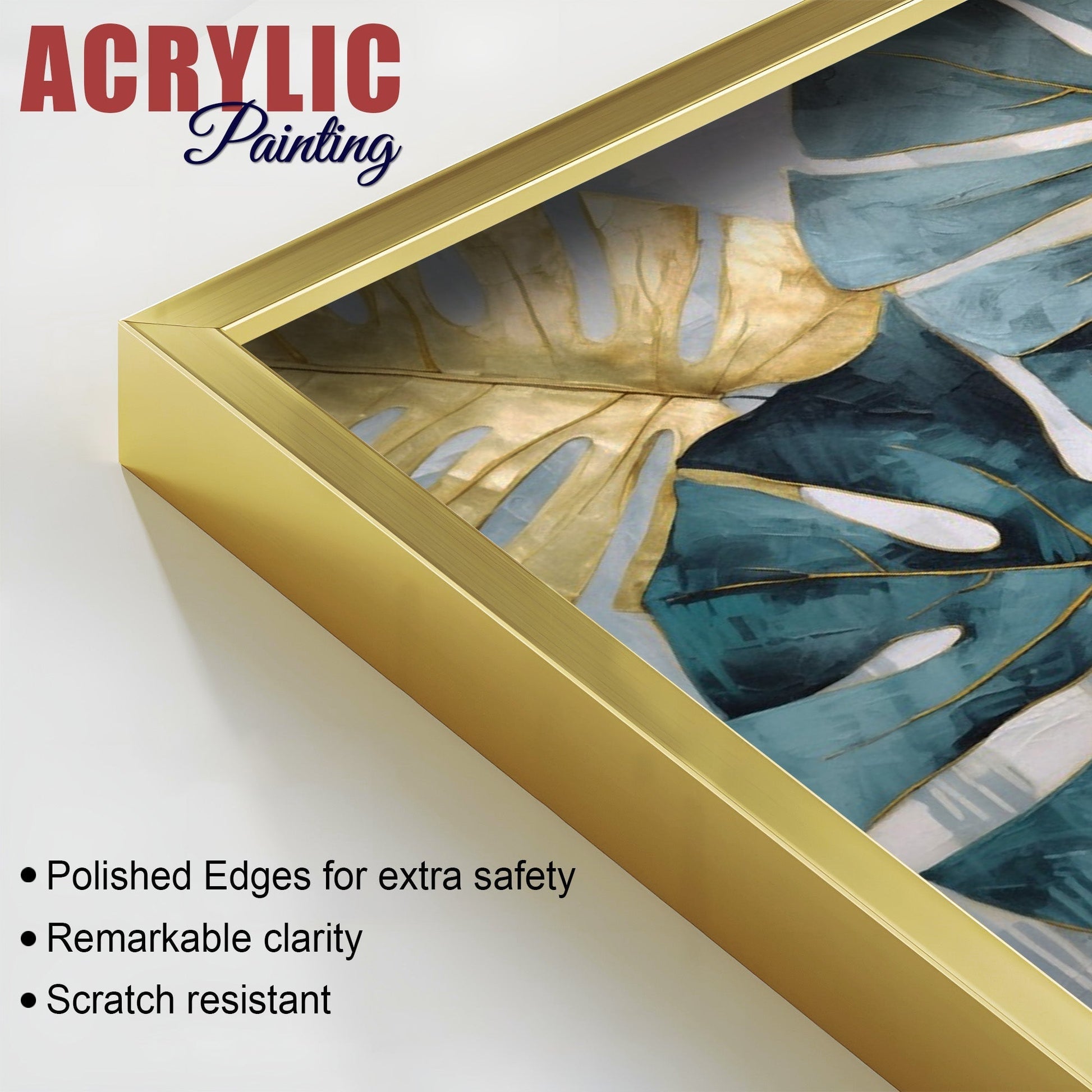 Monstera Leaves Acrylic Floating Wall Painting Set of 2