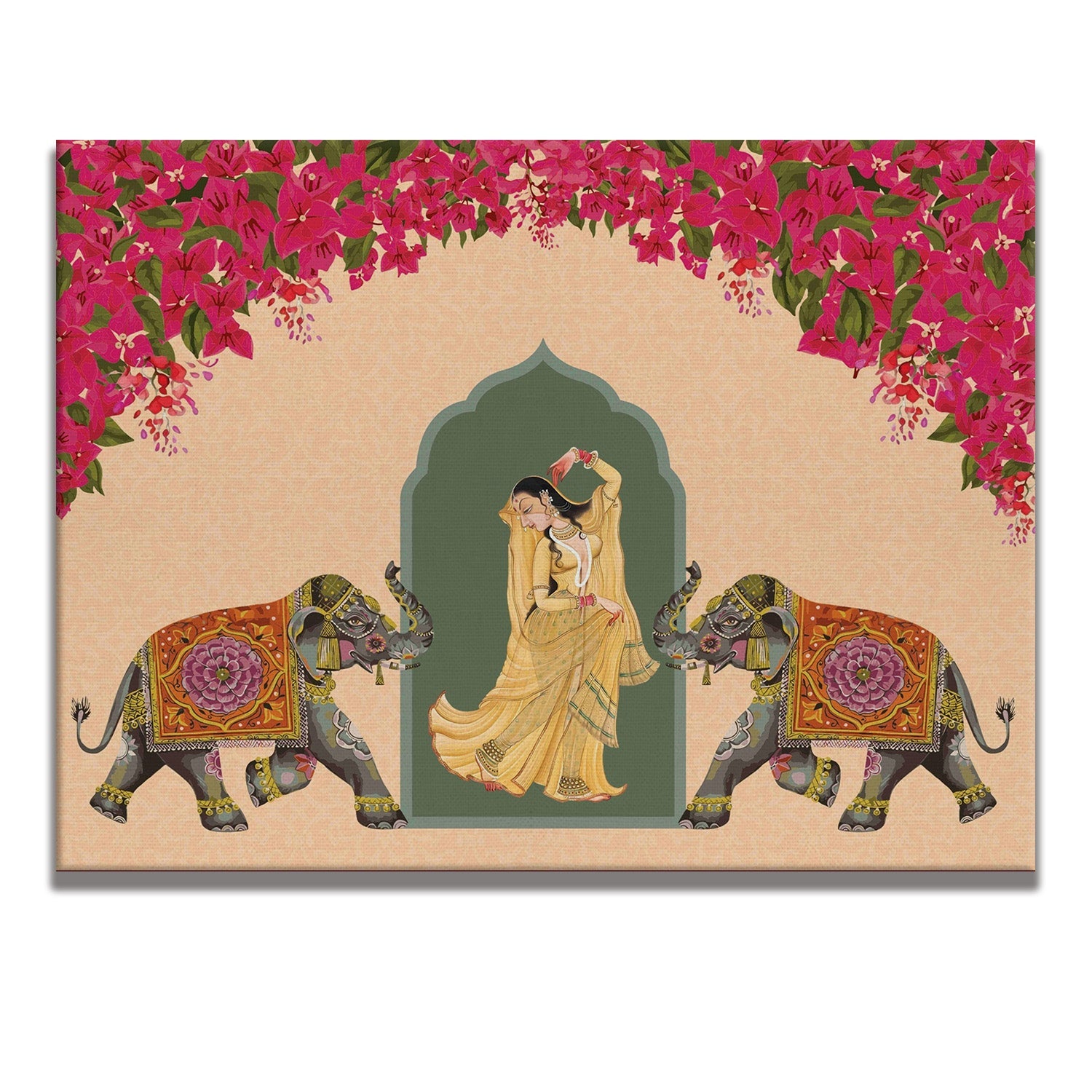 Mughal Elephats Paintings Canvas Art Indian Ethnic Traditional Wall Art Large Size Perfect For Living Rooms, Bedrooms, and Office Spaces