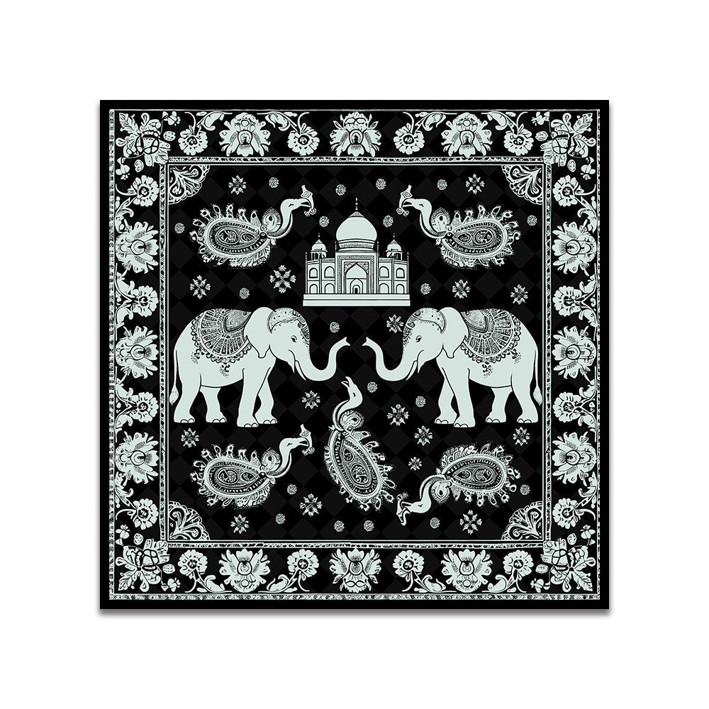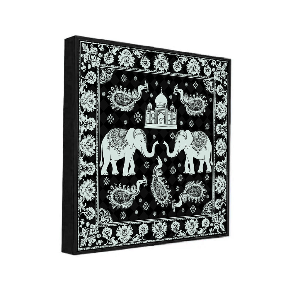 Mughal-Inspired Elephant & Paisley Art with Taj Mahal Motif Canvas Wall Painting