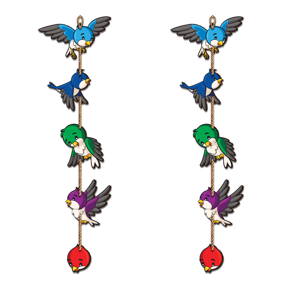 Multicolor 2 Pieces Sparrows Shaped Painted Wooden Wall Hangings