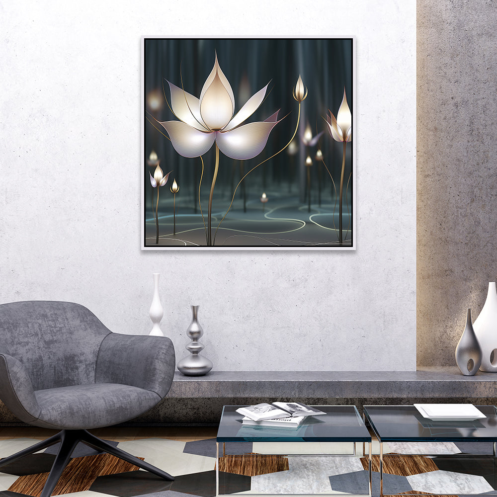 Mystical White Lotus Flower Vastu Digital Printed Square Canvas Wall Painting