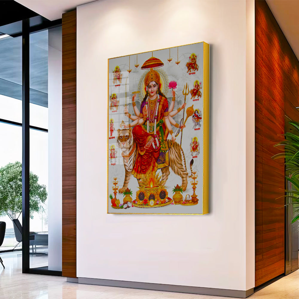 Nav Durga Sherawali Mata Rani Canvas Printed Acrylic Wall Paintings & Arts