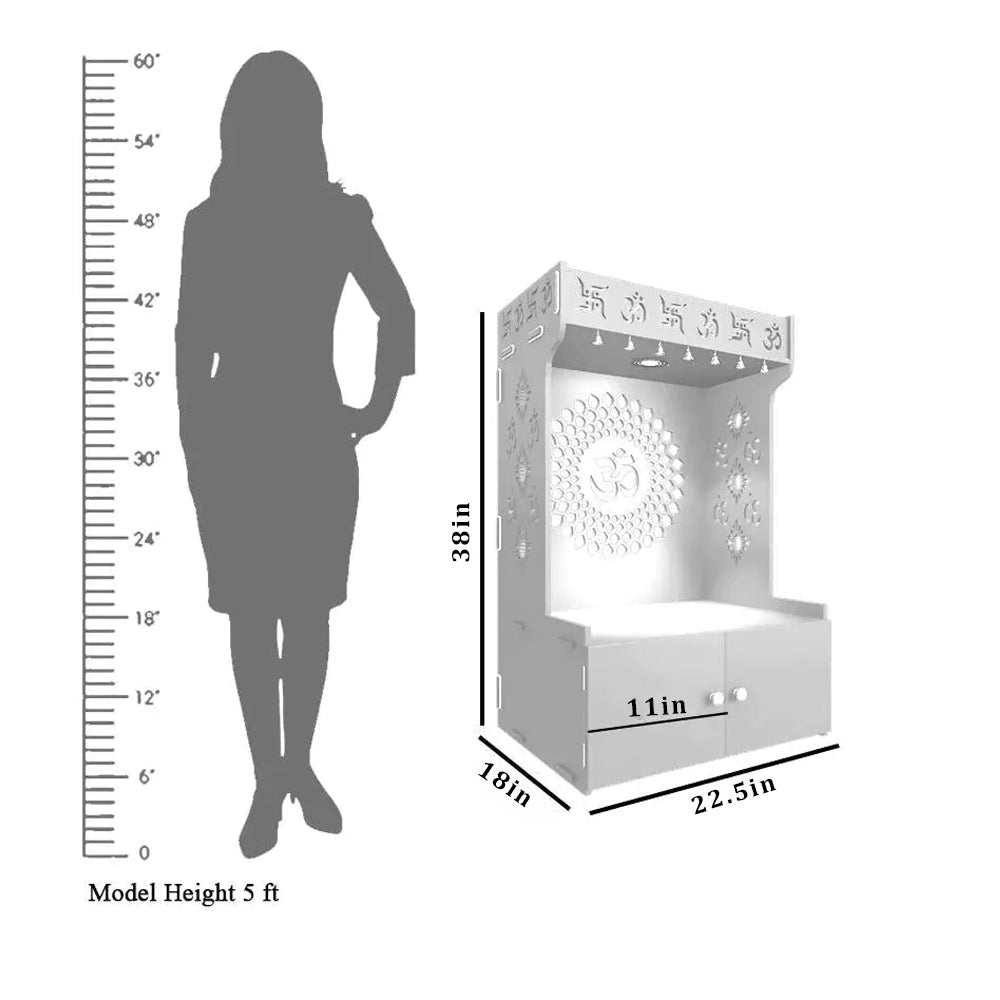 • Built-in drawers for storing incense, Diya’s, or prayer books