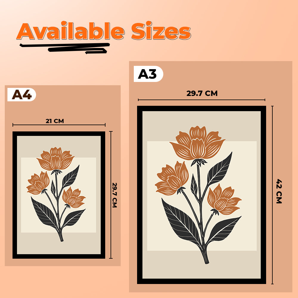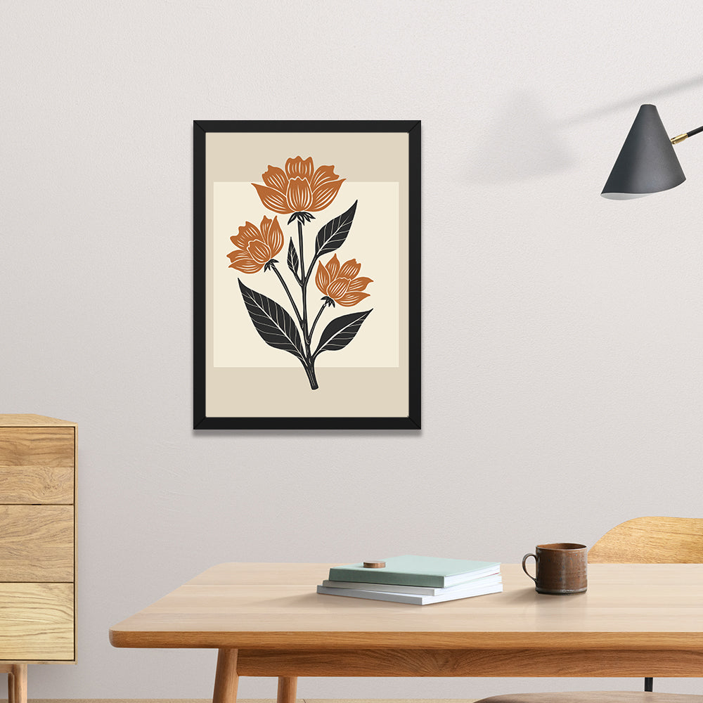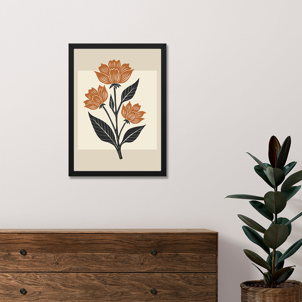 Orange Abstract Botanical Floral Wall Art Painting with Black Frame