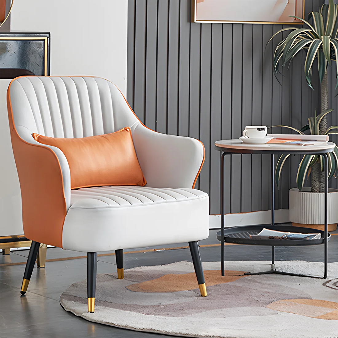 Orange Havya Faux Leather Arm Chair