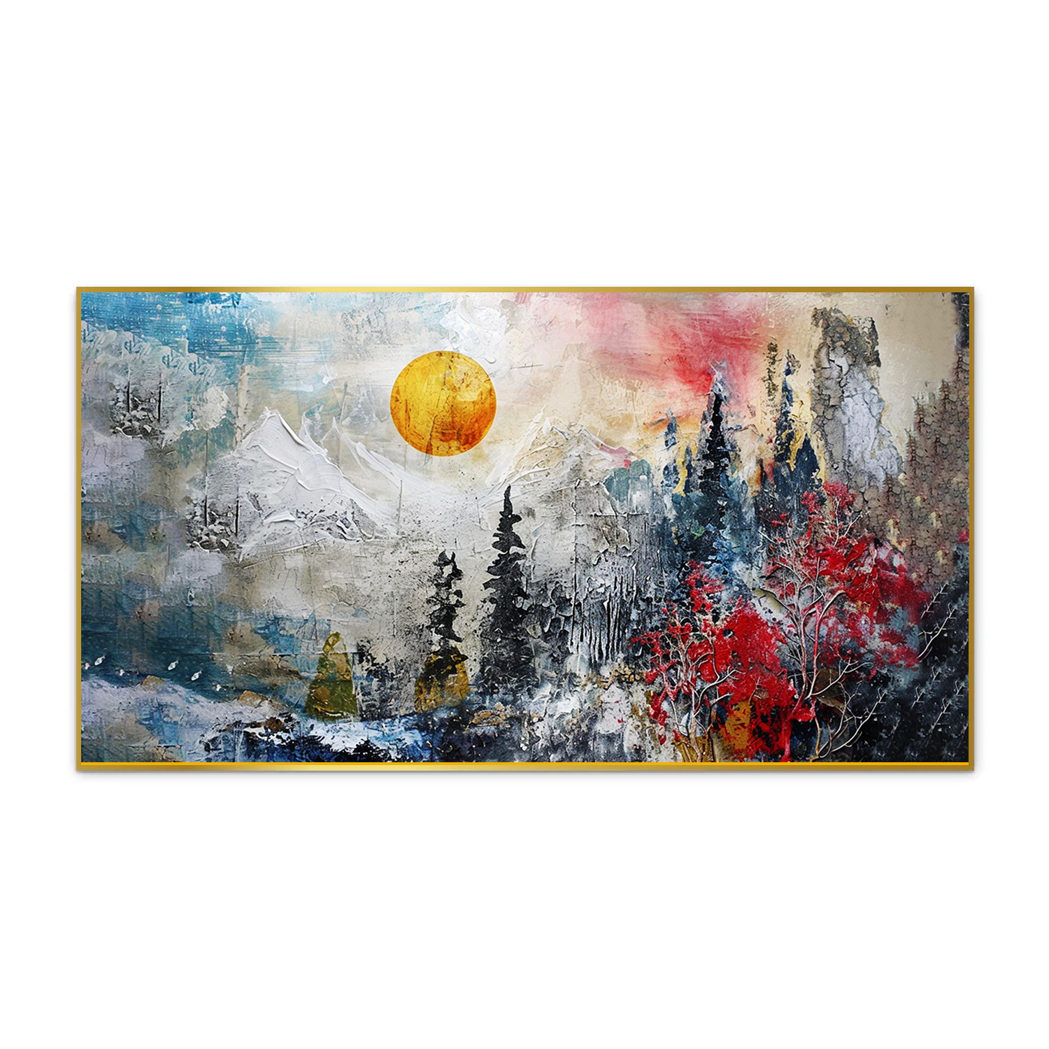Painting of a Mountain and Sun Scene in the Sky Abstract Canvas Painting