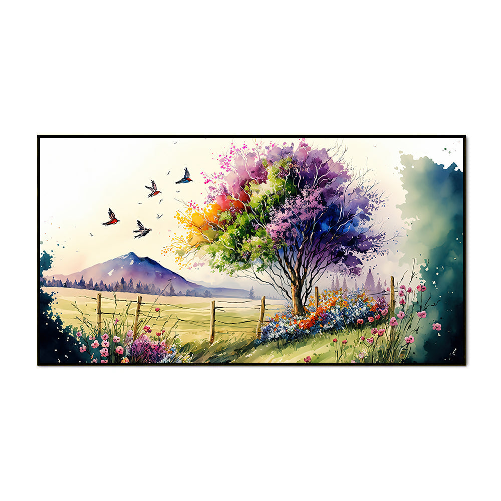 Panoramic Blooming Trees Multicolor Nature Landscape Canvas Wall Painting