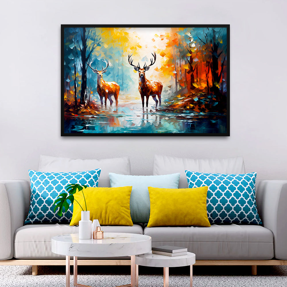 Panoramic Design Deer with Nature Canvas Printed Wall Paintings & Arts