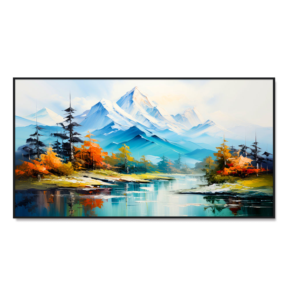 Panoramic Mountain Lake with Fall Foliage Canvas Printed Wall Paintings & Arts