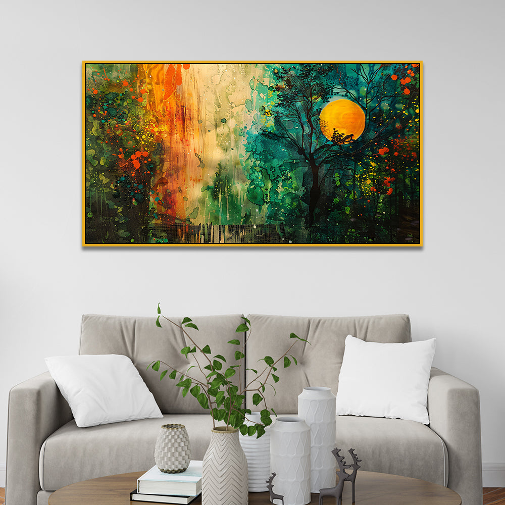 Panoramic Multicolor Nature Canvas Painting with Floating Frame