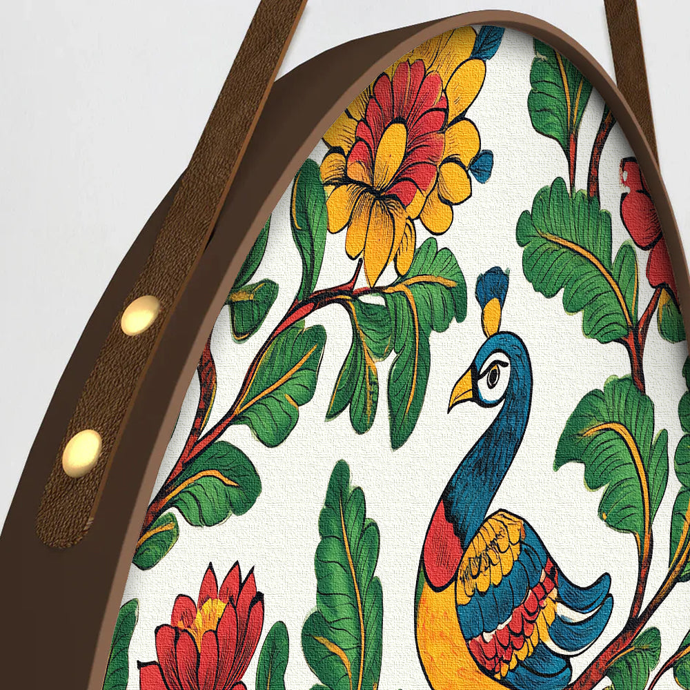 Peacock Design Round Framed Madhubani Art Canvas Wall Paintings - Set of 3