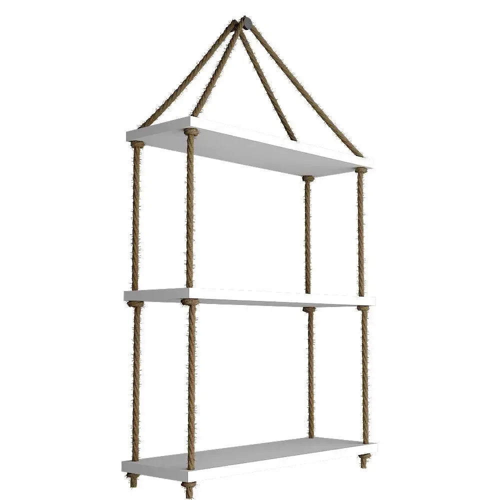 Planter Shelf Wooden Wall Hanging with Rope (White Color)