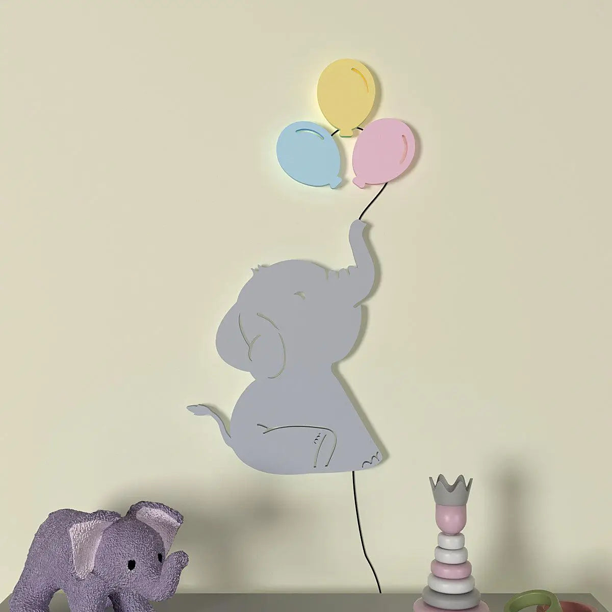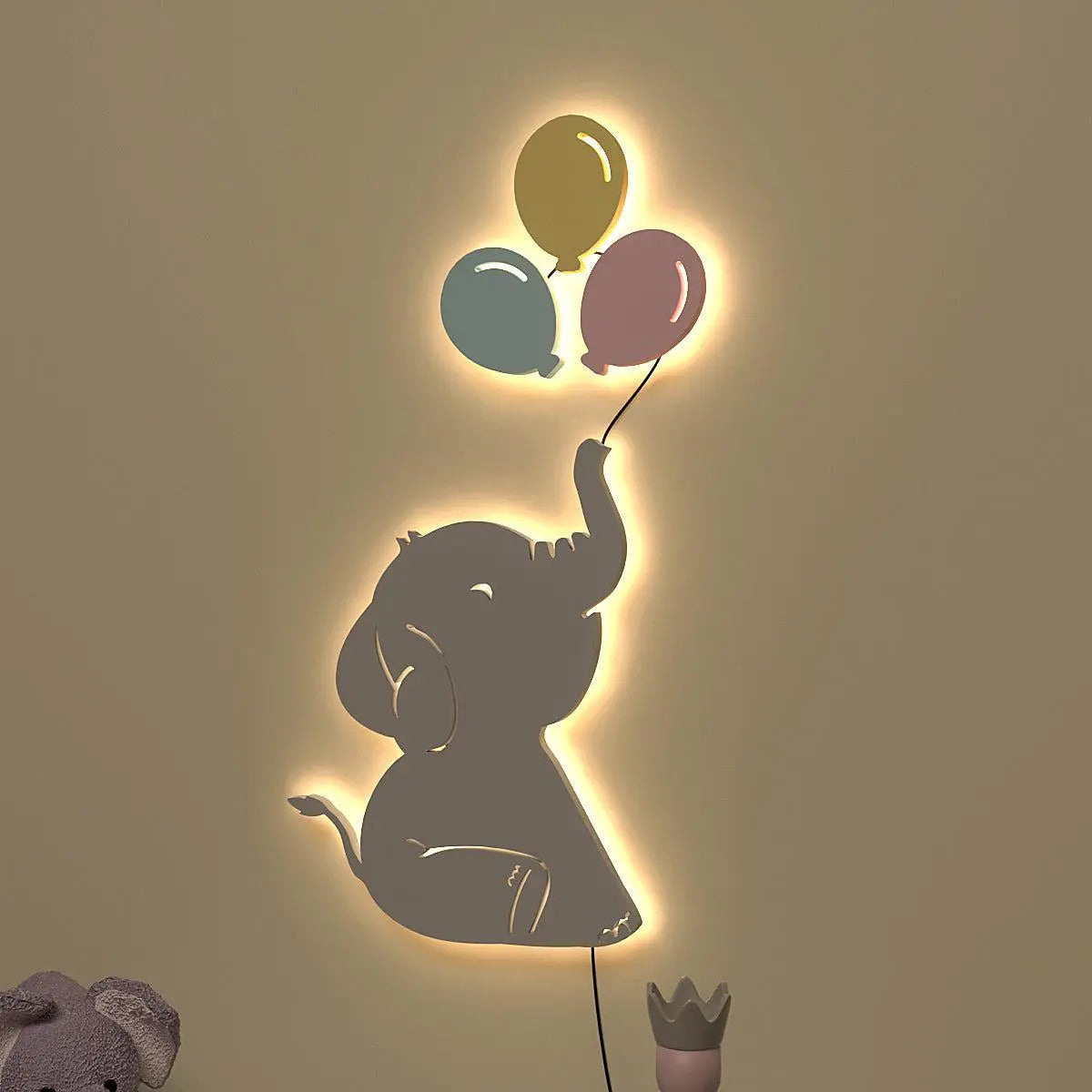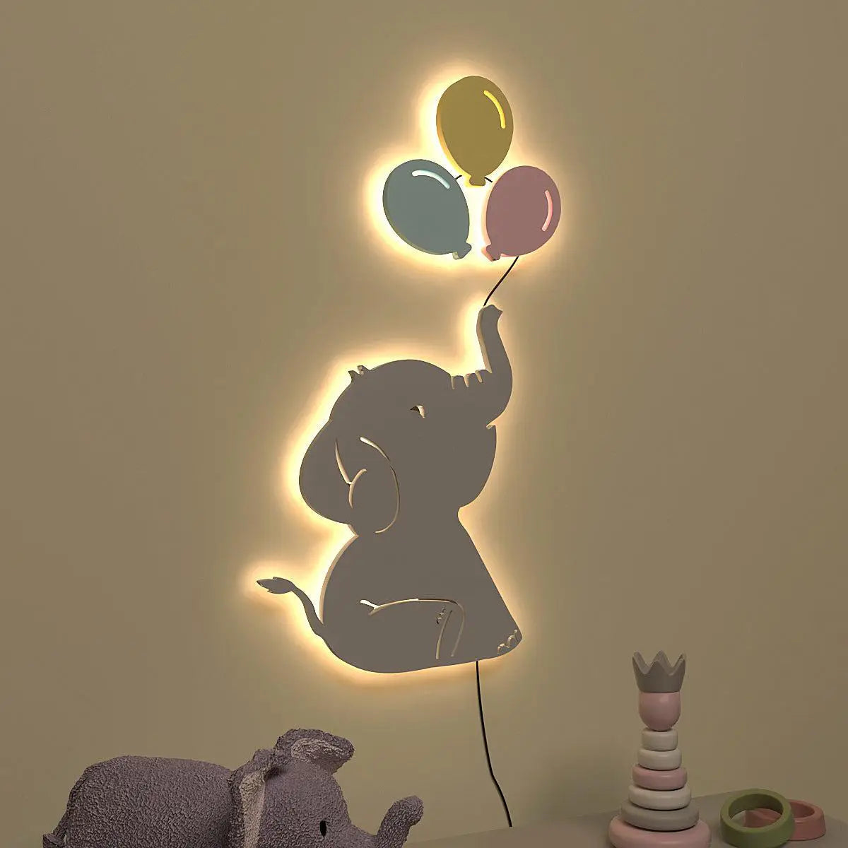Playful Elephant Baby Backlit Wooden Wall Décor