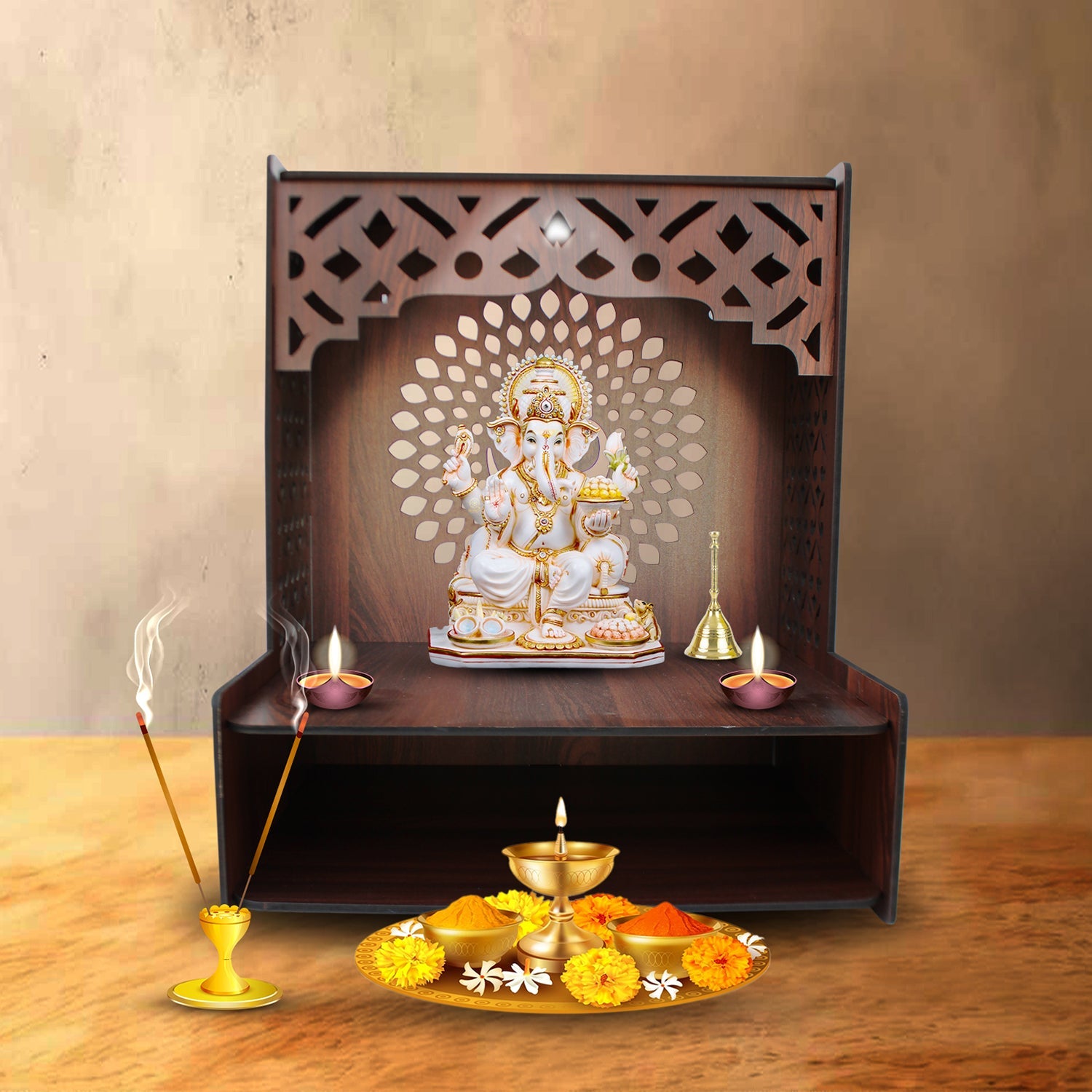 Portable Pooja Mandir for Home with Spacious Shelf & Inbuilt Focus Lights