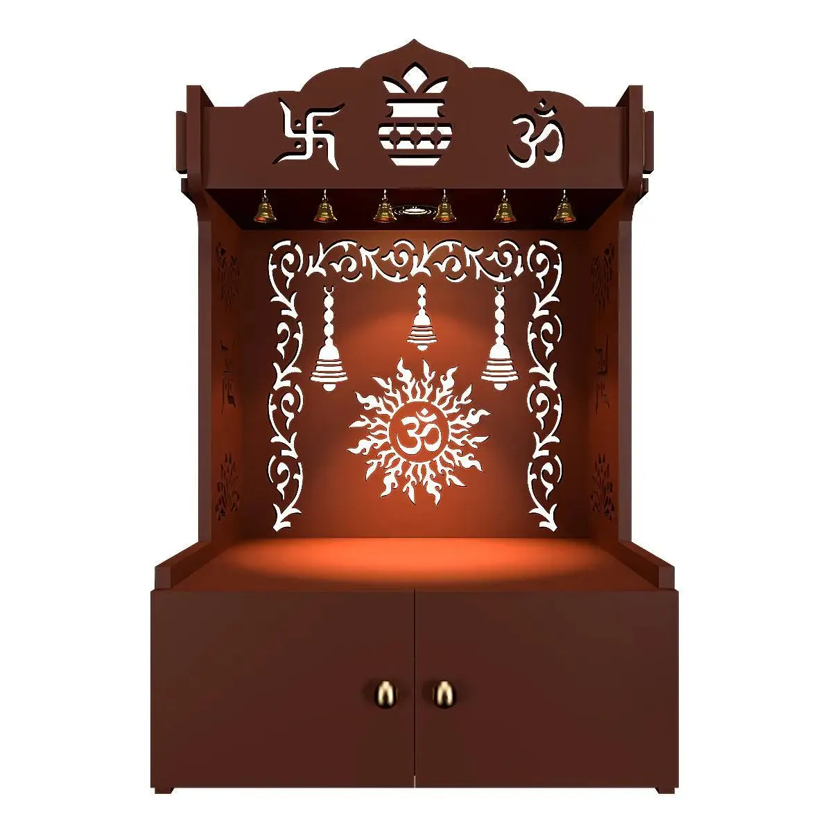 Premium Wall Temple with Inbuilt Focus Light & Spacious Wooden Shelf- Brown
