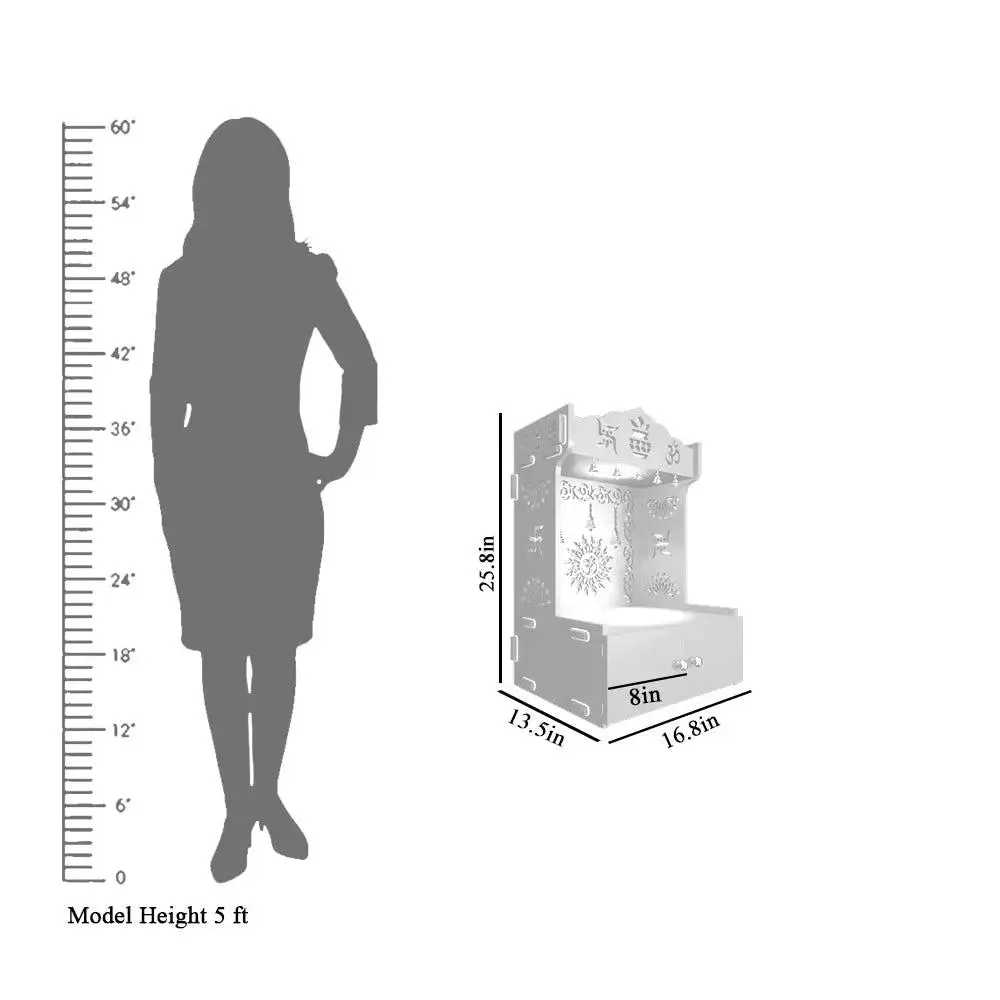 • Built-in drawers for storing incense, Diya’s, or prayer books