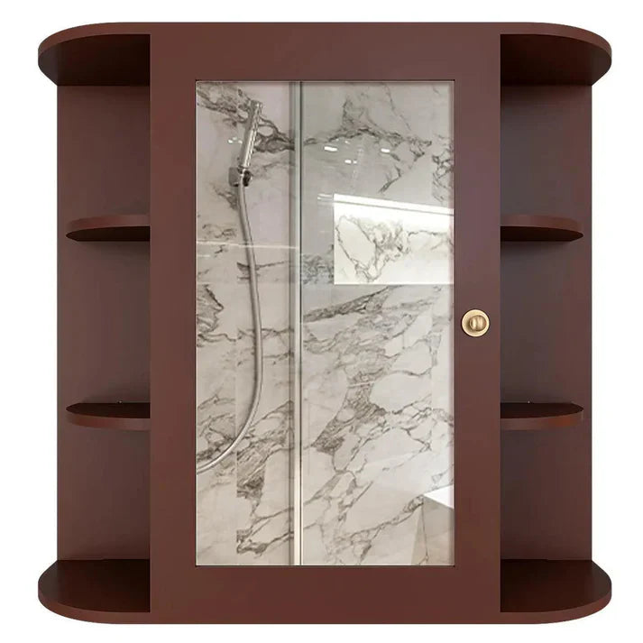 Premium Wooden Bathroom Cabinet Mirror with 10 Spacious Shelves with Brown Finish
