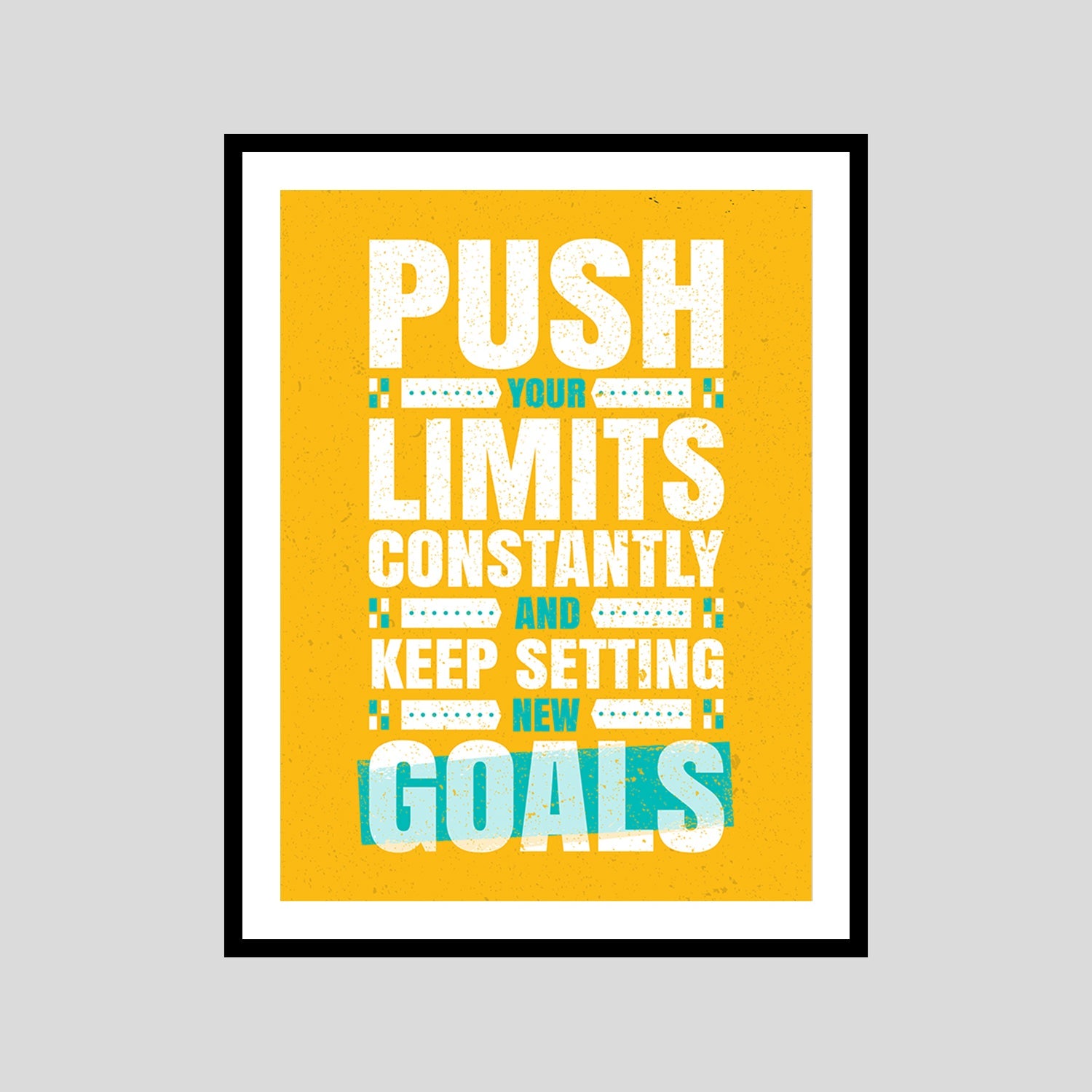 Push Your Limits Constantly And Keep Setting New Goals Motivational Posters Wall Frames for Students, Business, Employees, Startup