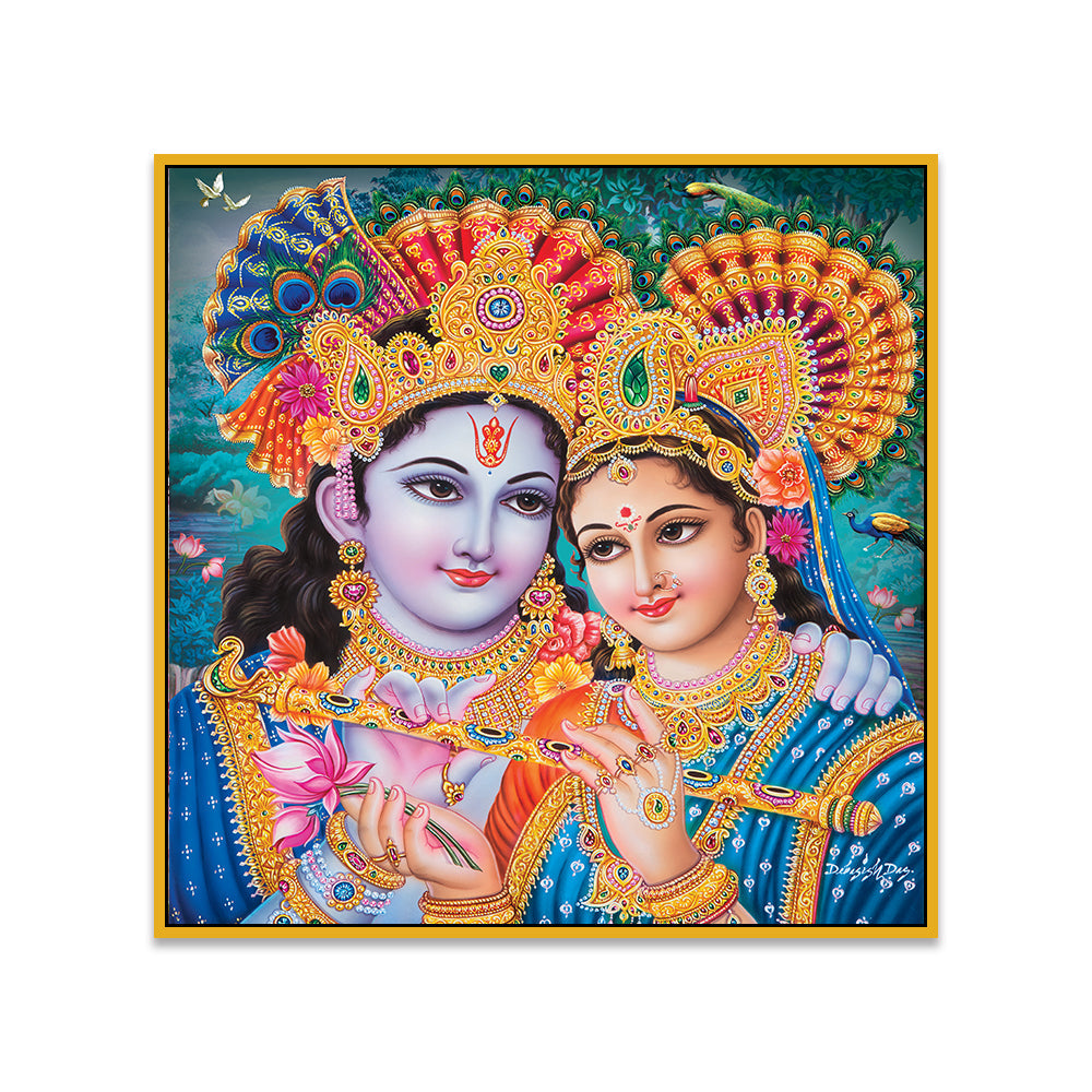Radha Krishna Square Religious Canvas Painting for Wall Décor