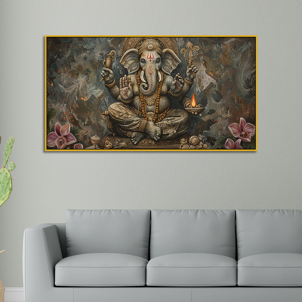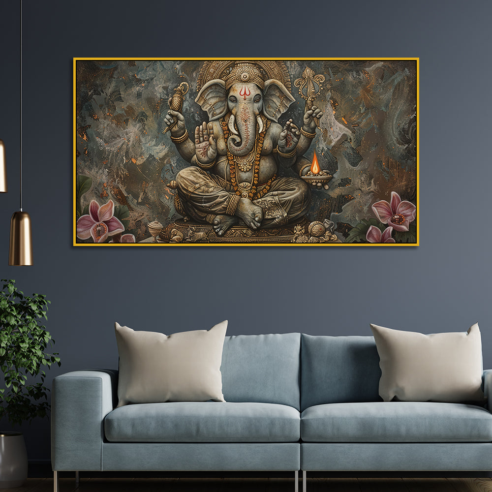 Retro Style Ganesha Wall Canvas – Hindu God Decor Piece