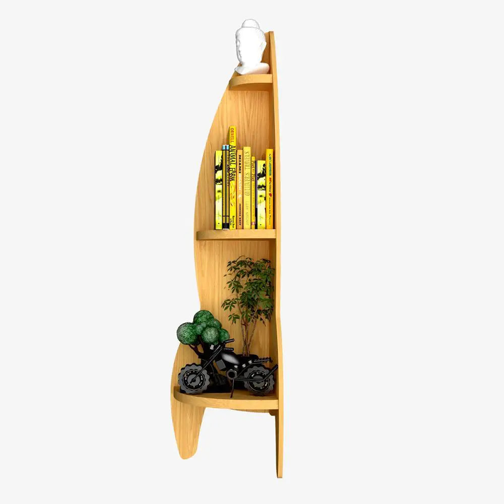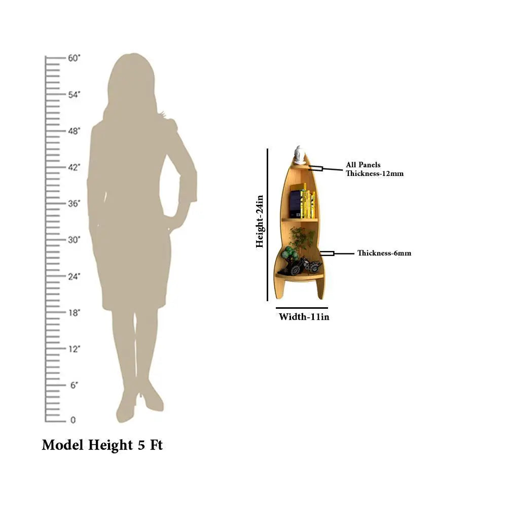 Rocket Shape Wood Corner Wall Shelf / Book Shelf,Oak Finish