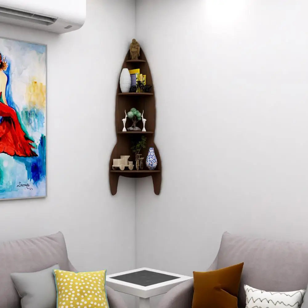 Rocket Shape Wood Corner Wall Shelf Large Size / Book Shelf,Walnut Finish