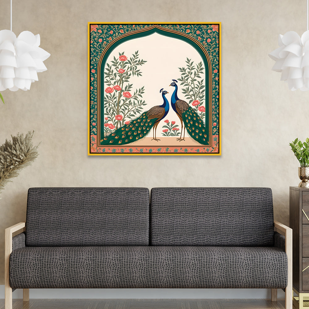 Romantic Peacock Couple Square Canvas Wall Painting FF060