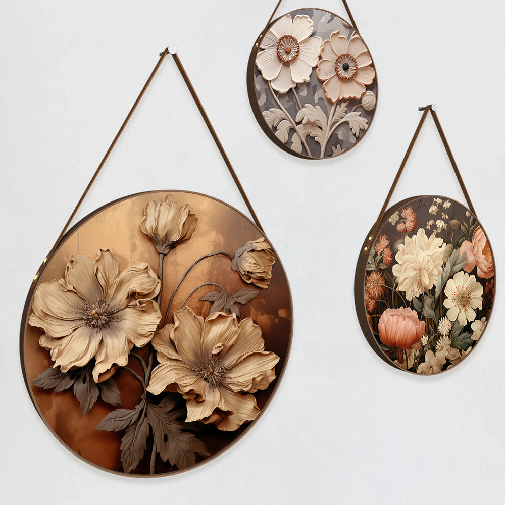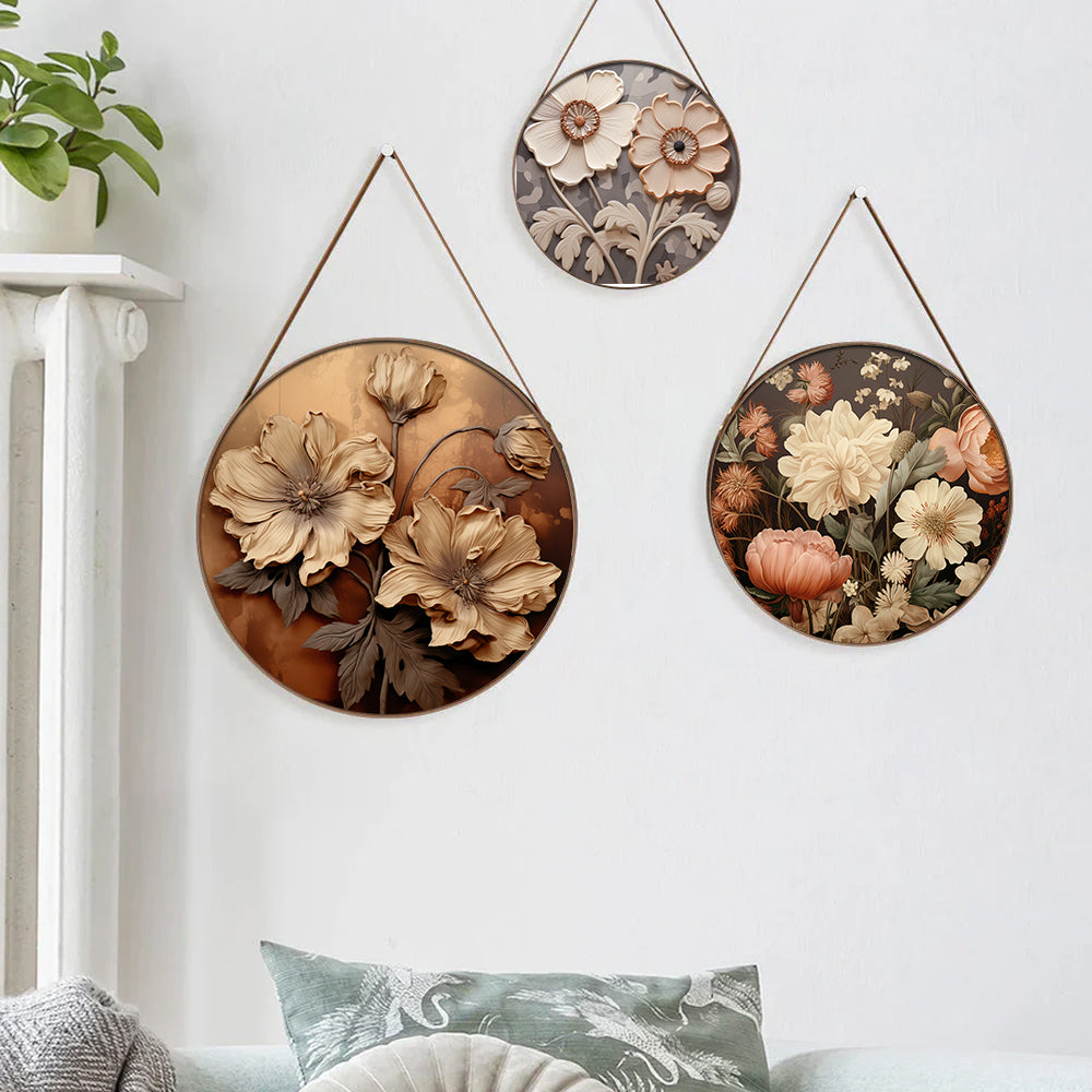 Round Framed Floral Canvas Wall Paintings - Set of 3