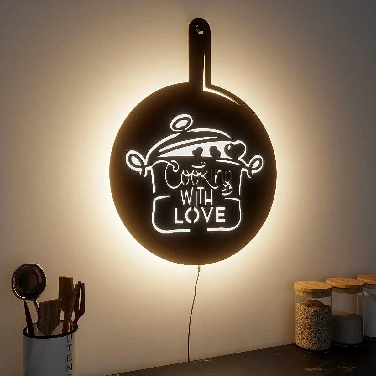 Round Love for Cooking Kitchen Backlit Wall Decor Art Piece