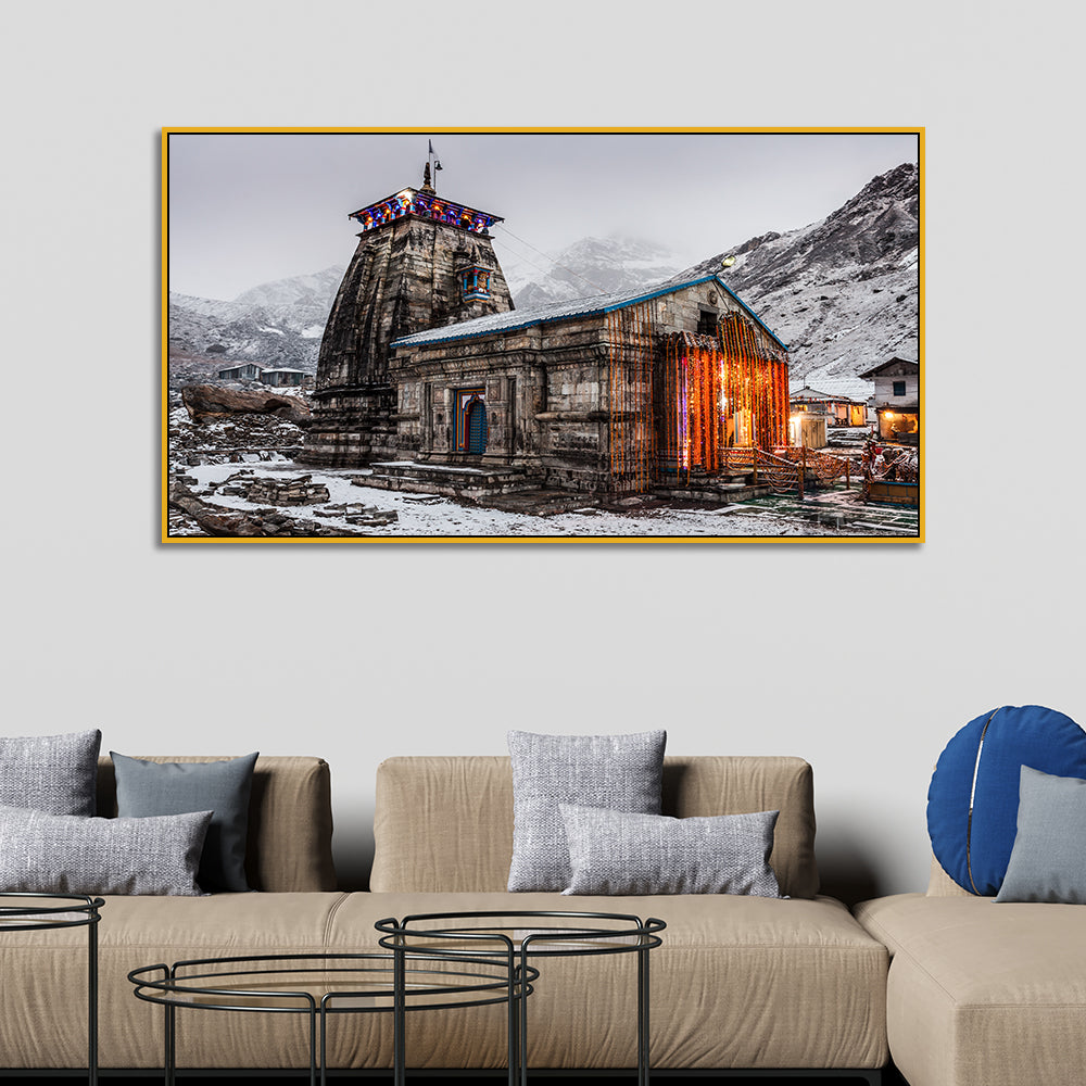 Sacred Himalayan Holy Kedarnath Temple Canvas Wall Painting