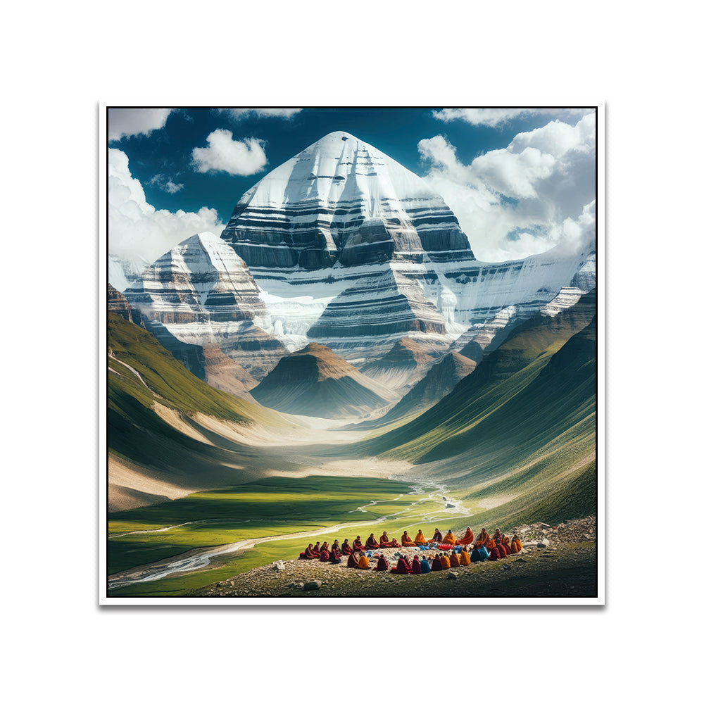 Sacred Serenity Mount Kailash Meditation Gathering Canvas Wall Painting