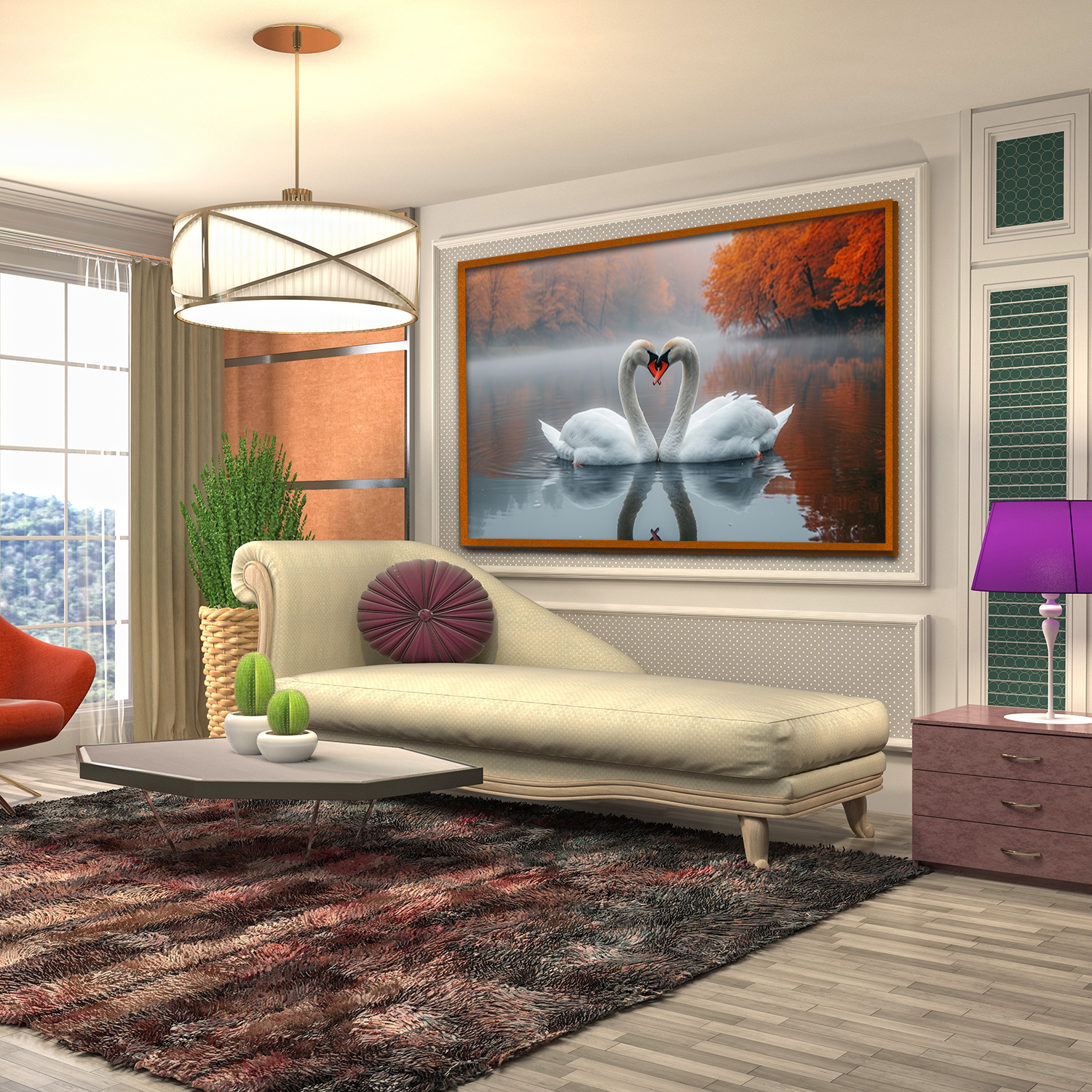 Serene Embrace Two Swans Birds Love Graceful Display Canvas Wall Paintings