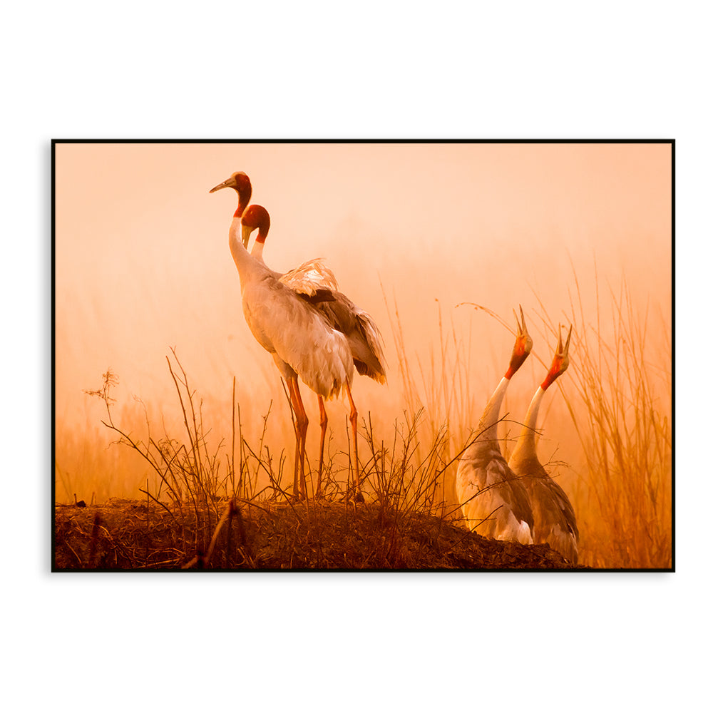 Striking Sarus Crane Rectangular Canvas Wall Painting