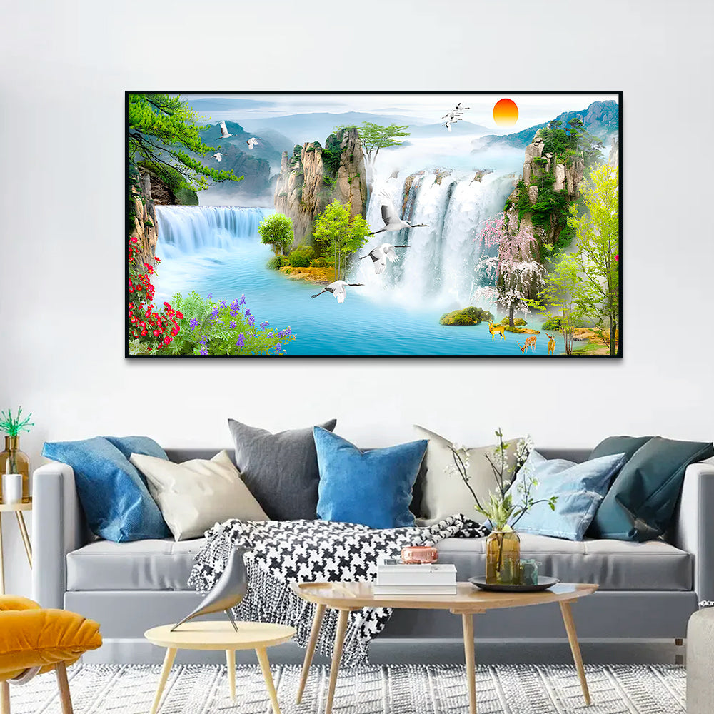 Stunning Waterfall Nature Scenery of Colorful Canvas Wall Paintings & Arts