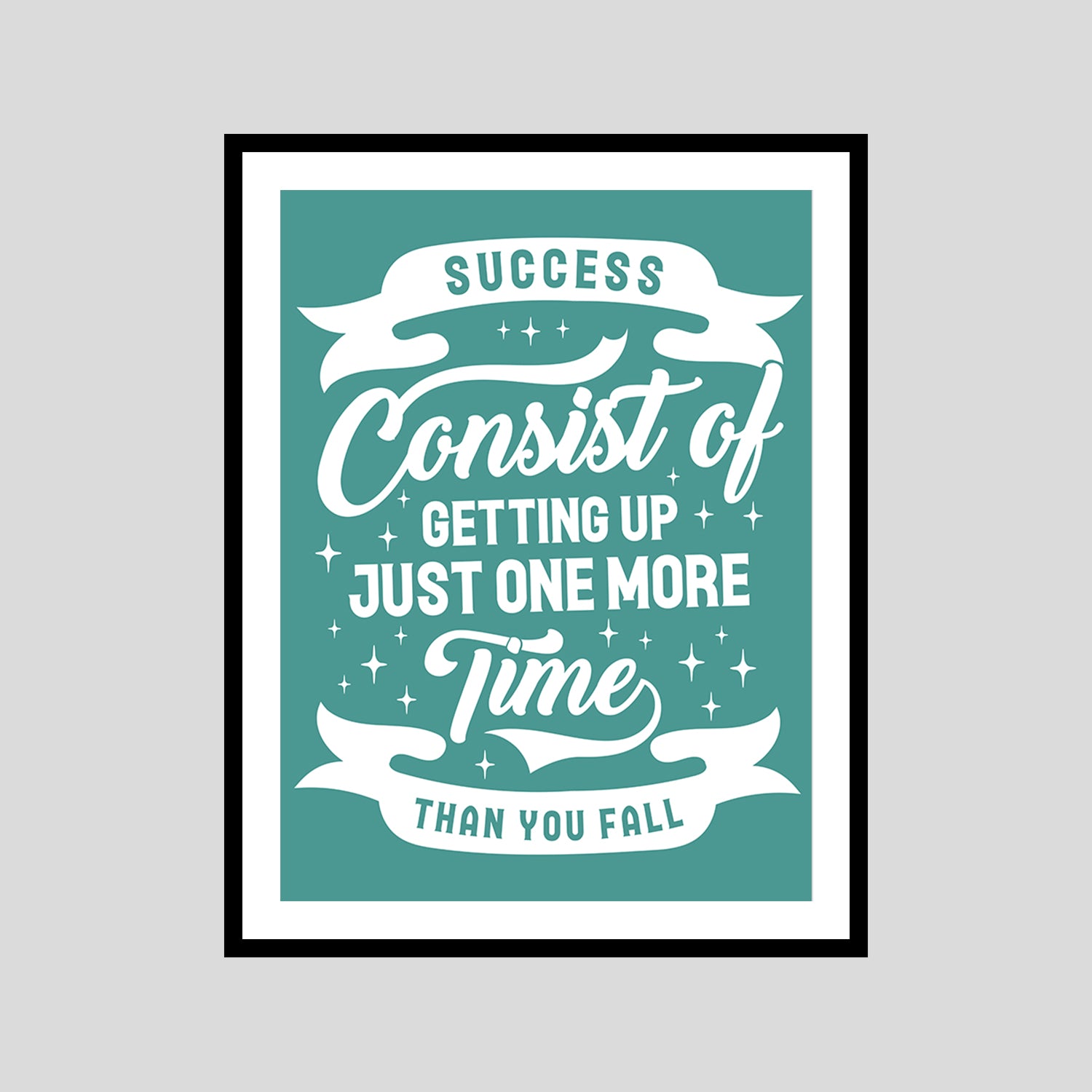 Success Consist Of Getting Up Just One More Time Than You Fall Motivational Posters Wall Frames for Students, Business, Employees, Startup