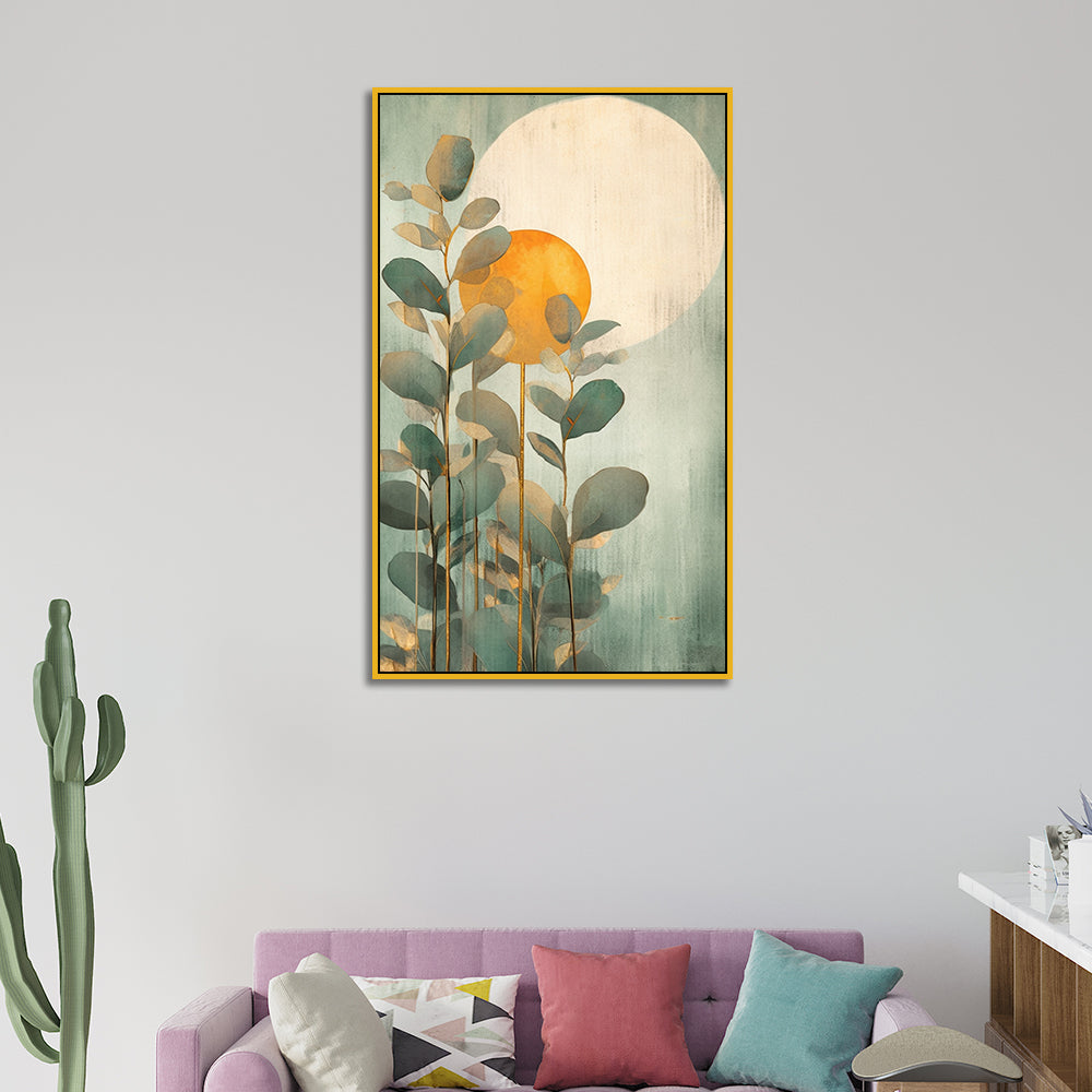 Sunset Over a Field of Leaves Nature Inspired Canvas Wall Painting