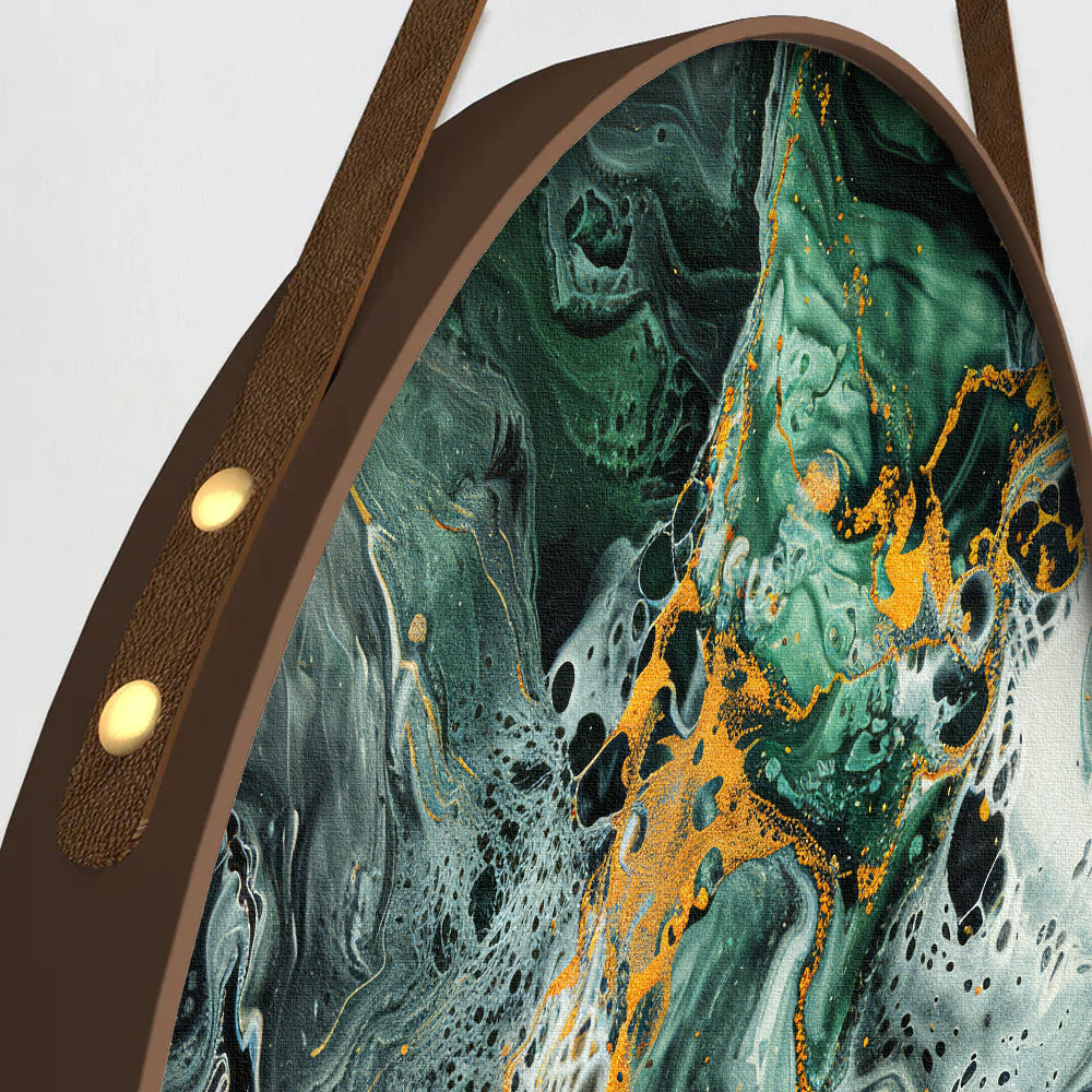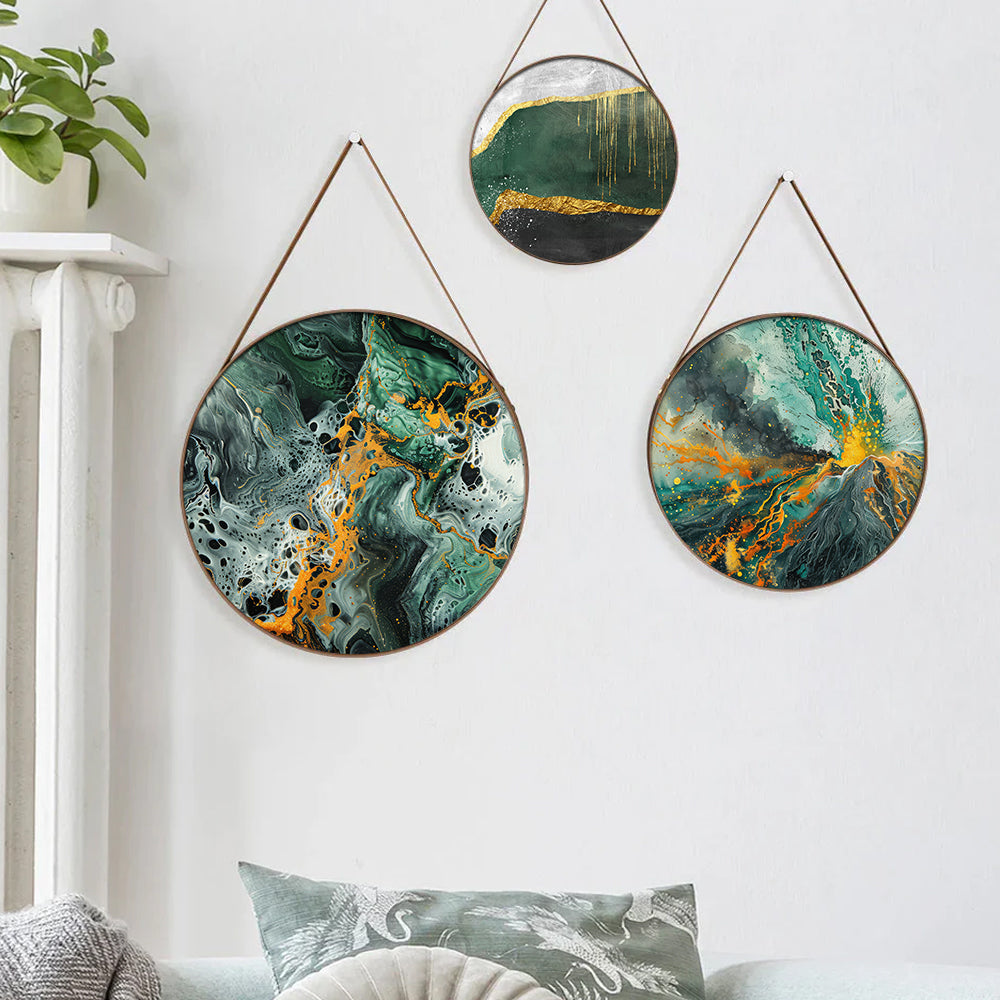 Teal and Gold Round Abstract Round Framed Canvas Wall Painting - Set of 3